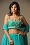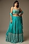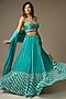 Featuring a dark green leheriya lehenga in georgette base with gota patti and mothra work. It is paired with a blouse and a dupatta. Accentuate with statement jewellery and heels for a wedding or sangeet ceremony.