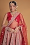 Featuring a red lehenga in silk base with zardosi embroidery. It is paired with a matching blouse and a dupatta. Accentuate it with statement jewellery and heels for a bridal look.