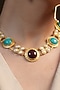 Gold Finish Turquoise Malachite & Pearl Choker Necklace