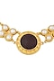 Featuring a gold finish choker necklace studded with turquoise malachite and pearls, set in brass. Perfect for brunch dates, casual outings, office wear, festive lunches or evening get-togethers.