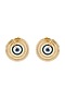 Featuring a pair of 22 Kt gold plated enameled evil eye stud earrings, set in brass.