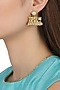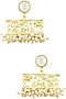 Featuring a pair of 22k gold plated mother of pearl studs with open rectangle shaped drop earrings in filigree design with pearl hangings, set in brass metal.
