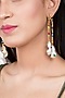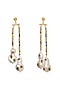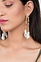 Featuring a pair of 22 Kt gold plated earrings studded with cabochons, garnet, emeralds, crystal, lapis lazuli, pearl, and beads, set in brass.