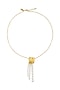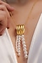 Featuring a 22kt gold plated pendant necklace studded with pearls and motif, set in brass. Perfect for brunch dates, casual outings, office wear, festive lunches or evening get-togethers.