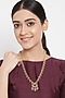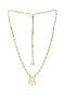Featuring a pair of 22 Kt gold plated rani haar necklace studded with fresh water pearls and beads, set in brass.