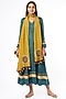 Featuring a teal green A-line anarkali in modal satin base with mirror embroidery. It is paired with matching churidar pants and a mustard dupatta having hand thread embroidery.