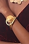 Featuring a gold finish round ornate bracelet, set in brass. Perfect for sangeet nights, cocktail parties or evening celebrations.