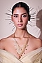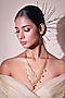 Featuring a gold finish jali necklace studded with zircons and kundan hangings, set in brass. Perfect for sangeet nights, cocktail parties or evening celebrations.