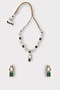 White Finish Faux Diamond & Emerald Stone Enameled Necklace Set
