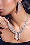 Featuring a white finish necklace studded with pearls and zircons, set in mixed metal. It is paired with a matching pair of earrings. Add a touch of sparkle to your ensemble, perfect for wedding ceremonies or festive celebrations.