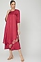 Featuring a blush pink cape dress in linen silk base with tie-up.