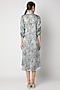 Featuring a grey shirt dress in cotton silk base with side loops and zardosi embroidery.