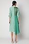 Featuring a mint green shirt dress in cotton silk base with color blocking and zardosi embroidery.