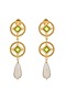 Gold Plated Green Swarovski Dangler Earrings In Brass