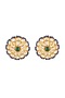 Featuring a pair of gold finish stud earrings studded with kundan polki and green semi-precious stones, set in 92.5 sterling silver.