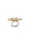 Featuring a gold finish ring studded with kundan polki and semi-precious ruby stones, set in 92.5 sterling silver.