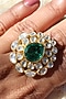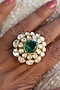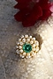 Featuring a 22kt gold plated handcrafted ring studded with green semi-precious stone and moissanite kundan polki, set in 92.5 sterling silver.