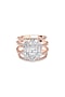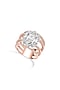 Featuring a 18kt rose gold finish ring studded with four diamond bands and three diamond petal motif, set in gold. Perfect wear for festive occasions or wedding ceremonies.