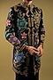 Featuring a black indo-western jacket in korean lycra base with moti, crystal, and cutdana embellishments. It is paired with korean lycra trousers. Style it with loafers and a watch for weddings or cocktail ceremonies.