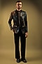 Featuring a black bandhgala jacket in korean lycra base with crystal, nalki, and cutdana embellishments, including eagle hand painting. It is paired with korean lycra trousers. Style it with loafers and a watch for weddings or cocktail ceremonies.