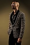 Featuring a black tuxedo jacket in velvet base with dori, sequins, and cutdana work on the lapel. It is paired with trousers. Style it with loafers and a watch for weddings or cocktail ceremonies.