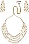 Featuring a gold finish layered necklace studded with kundan polki, set in mixed metal. It is paired with a matching pair of earrings. Perfect wear for festive occasions or wedding ceremonies.