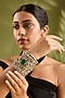 Featuring a gold finish broad cuff studded with green kundan polki, set in mixed metal. Perfect for festive occasions, weddings or cultural events, this jewellery is a wardrobe must for those who love to shine effortlessly.