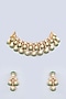Featuring a gold finish necklace studded with green moissanite stones, set in mixed metal. It is paired with a matching pair of earrings. Perfect for weddings or festive celebrations.
