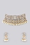 Featuring a gold finish choker necklace studded with kundan polki, set in mixed metal. It is paired with a matching pair of earrings. Perfect choice for weddings, parties, and for other Indian festivities.