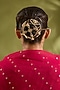 Featuring a gold finish hair bun studded with kundan polki and multi-colored stones, set in mixed metal. It comes with a matching hair fork. Perfect for festive occasions, weddings or cultural events, this jewellery is a wardrobe must for those who love to shine effortlessly.