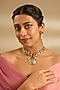 Featuring a gold finish pendant necklace studded with kundan polki and multi-colored stones, set in mixed metal. It is paired with a matching pair of earrings. Perfect for festive occasions, weddings or cultural events, this jewellery is a wardrobe must for those who love to shine effortlessly.