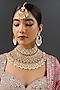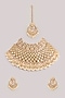 Featuring a gold finish necklace studded with kundan polki, set in mixed metal. It is paired with a matching pair of earrings and a maangtikka. Perfect wear for festive occasions or wedding ceremonies.