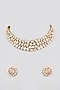 Featuring a gold finish necklace studded with kundan polki, set in mixed metal. It is paired with a matching pair of earrings. Perfect for festive occasions, weddings or cultural events, this jewellery is a wardrobe must for those who love to shine effortlessly.