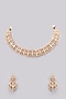 Featuring a gold finish necklace studded with kundan polki, set in mixed metal. It is paired with a matching pair of earrings. Perfect choice for weddings, parties and for other Indian festivities.