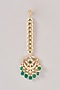 Featuring a gold finish maangtikka studded with kundan polki, emerald drops and pearls, set in mixed metal. Perfect wear for festive occasions or wedding ceremonies.