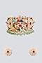 Featuring a gold finish choker necklace studded with kundan polki, pink stones and green pearls, set in mixed metal. It is paired with a matching pair of earrings. Perfect for festive occasions, weddings or cultural events, this jewellery is a wardrobe must for those who love to shine effortlessly.