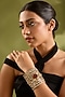 Featuring a gold finish broad cuff studded with kundan polki and red stones, set in mixed metal. Perfect for festive occasions, weddings or cultural events, this jewellery is a wardrobe must for those who love to shine effortlessly.
