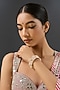 Featuring a pair of gold finish openable bangles studded with kundan polki and white resin work, set in mixed metal. Perfect wear for festive occasions or wedding ceremonies.