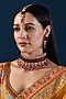 Featuring a gold finish choker necklace studded with kundan polki and ruby stones, set in mixed metal. It is paired with a matching pair of earrings and a maangtikka. Perfect wear for festive occasions or wedding ceremonies.
