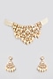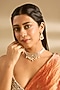 Featuring a gold finish choker necklace studded with moissanite stones, set in mixed metal. It is paired with a matching pair of earrings. Perfect for festive occasions, weddings or cultural events, this jewellery is a wardrobe must for those who love to shine effortlessly.