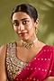 Featuring a gold finish choker necklace studded with moissanite stones, set in mixed metal. It is paired with a matching pair of earrings. Perfect for festive occasions, weddings or cultural events, this jewellery is a wardrobe must for those who love to shine effortlessly.