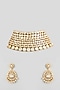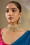 Featuring a gold finish choker necklace studded with moissanite stones, set in mixed metal. It is paired with a matching pair of earrings. Perfect for wedding celebrations, festive soirees or cultural gatherings adding a regal charm to every look.