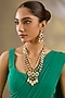 Featuring a gold finish long necklace studded with moissanite stones and green stones, set in mixed metal. It is paired with a matching pair of earrings. Perfect for wedding celebrations, festive soirees or cultural gatherings adding a regal charm to every look.