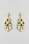 Gold Finish Moissanite Stone & Green Stone Long Necklace Set