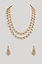 Featuring a gold finish layered necklace studded with moissanite stones, set in mixed metal. It is paired with a matching pair of earrings. This jewellery elevates weddings, parties and festive looks, style it with embellished outfits and heels for a refined, glamorous finish.