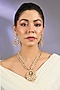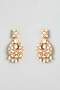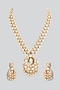 Featuring a gold finish long necklace studded with moissanite stones, set in brass. It is paired with a matching pair of earrings. Perfect for wedding celebrations, festive soirees or cultural gatherings adding a regal charm to every look.