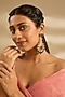 Featuring a pair of gold finish dangler earrings studded with multi-colored kundan polki and green pearls, set in mixed metal. Perfect for festive occasions, weddings or cultural events, this jewellery is a wardrobe must for those who love to shine effortlessly.