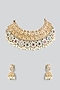 Featuring a gold finish jadau necklace studded with multi-colored kundan polki, set in brass. It is paired with a matching pair of earrings. Perfect for wedding celebrations, festive soirees or cultural gatherings adding a regal charm to every look.