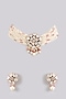Featuring a gold finish choker necklace studded with red kundan polki and pearl hangings, set in mixed metal. It is paired with a matching pair of earrings. Add a touch of sparkle to your ensemble, perfect for weddings or festive celebrations.