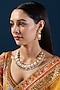 Featuring a 22 Kt gold plated necklace studded with pearls, kundan polki, and jadau stones, set in mixed metal. It is paired with a matching pair of earrings. Perfect wear for festive occasions or wedding ceremonies.